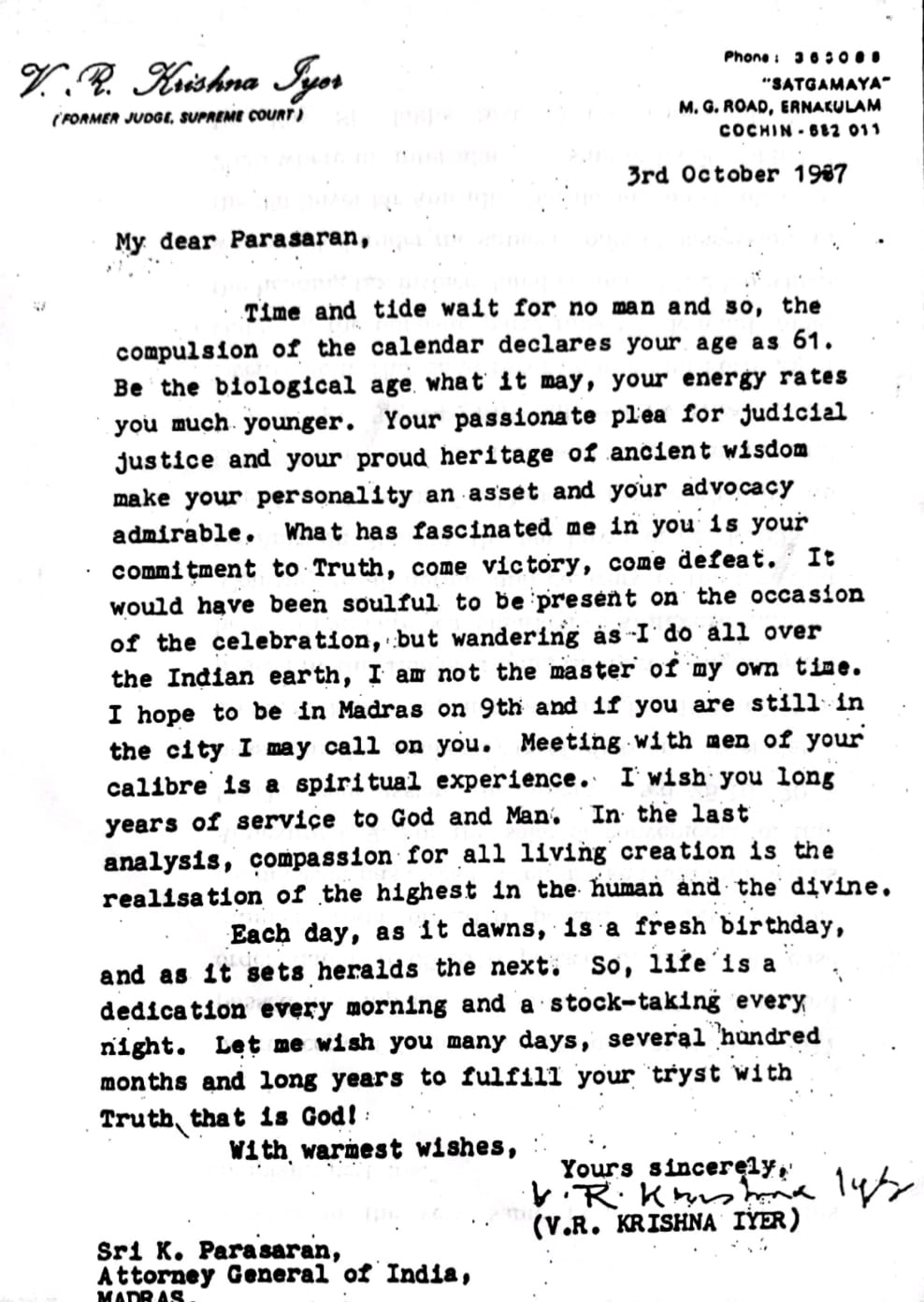 Mr. V R Krishna Iyer to Shri. K Parasaran AG